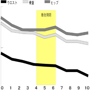 爆食しながら、ウエスト−8.3cm、骨盤回り−7.5cm、ヒップ−5.6cmを達成!スゴイ!と思った。