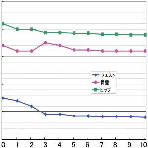 それでもウエストがだんだん細くなっていくのが自分でもよくわかり、なんだか不思議な感じがしました。 特にウエストの後ろ側がスッキリしてきました。 けっこう冷え性だったのですが、それもかなり改善されています。